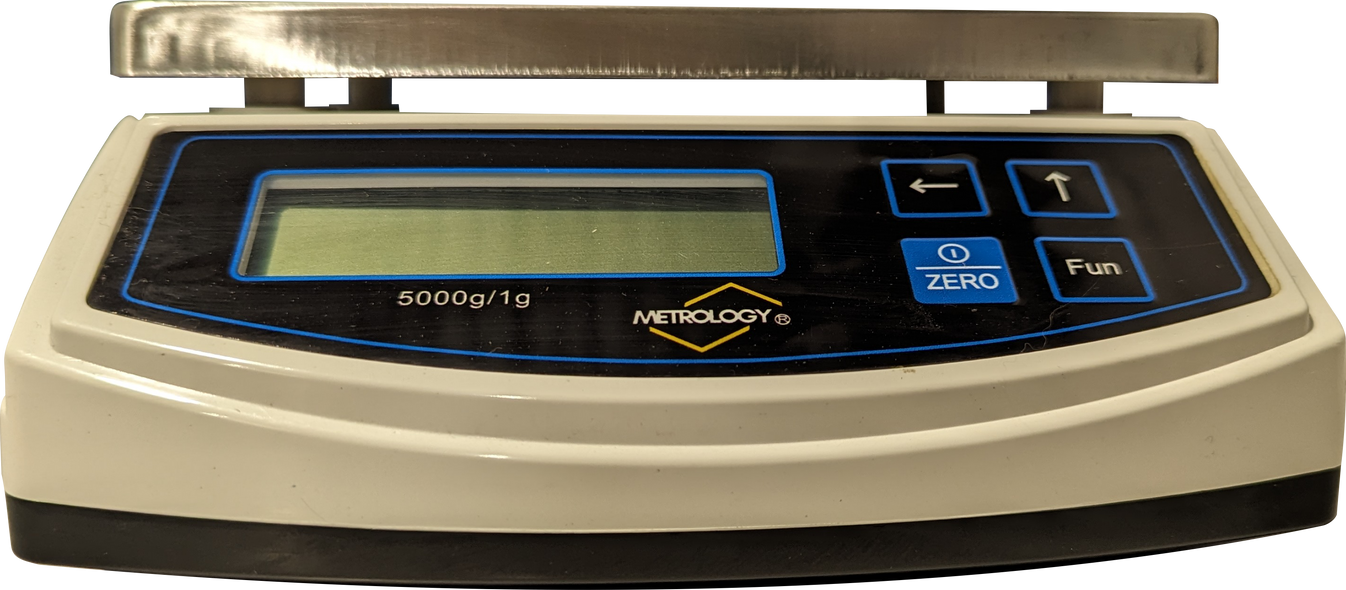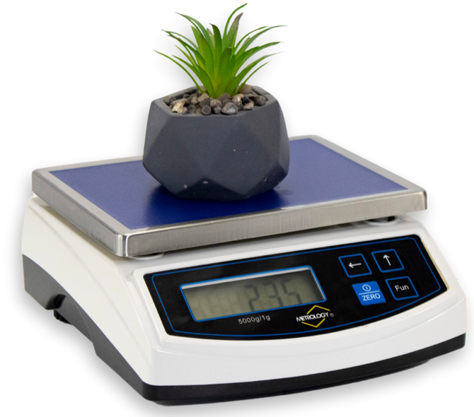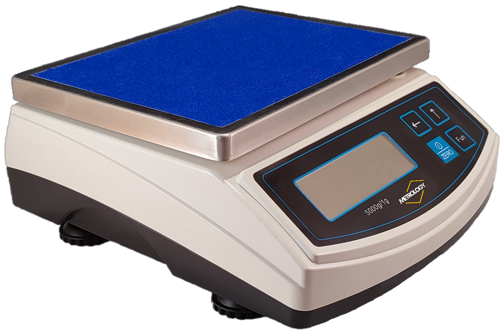 Capacidad de 5kg con división mínima configurable de 1g y 0.5g